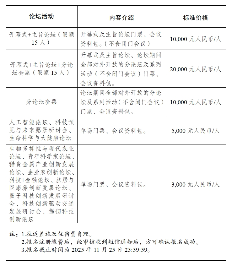 请参加腾冲科学家论坛的科研人员、科技工作者、青年学生、企业家、投资人,各类科研院所、高等院校、科技企业、创新创业主体、投资机构及行业协会人员,于2025年11月25日23:59前报名参会。