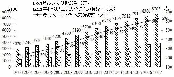 图1 我国科技人力资源总量(2003-2017年)